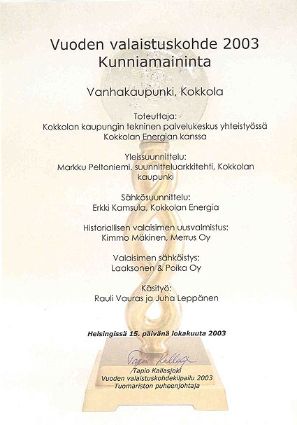 Kokkolan vanhan kaupungin valaistuskalusteiden